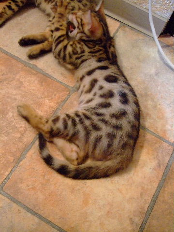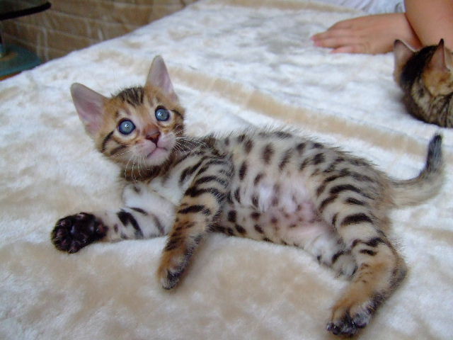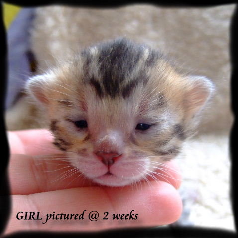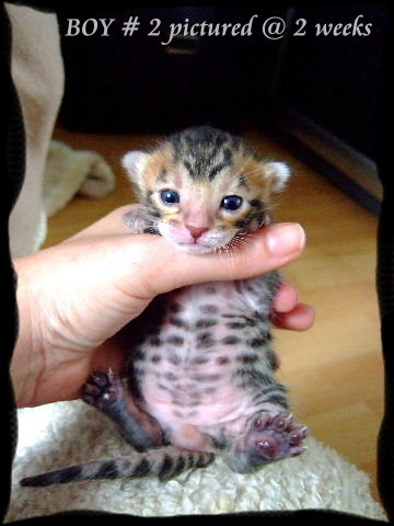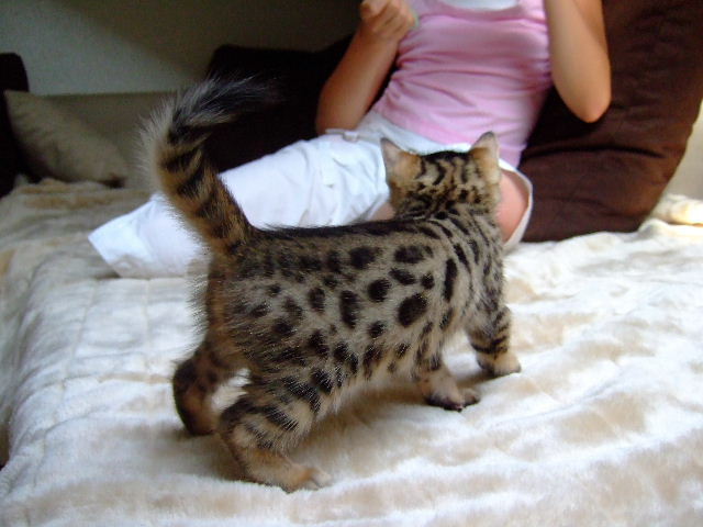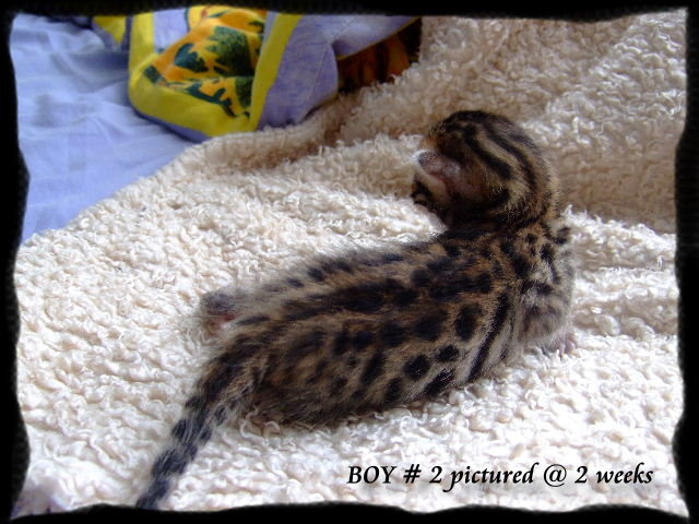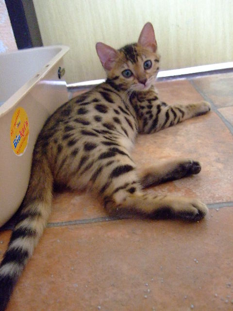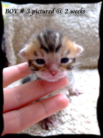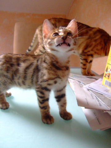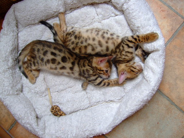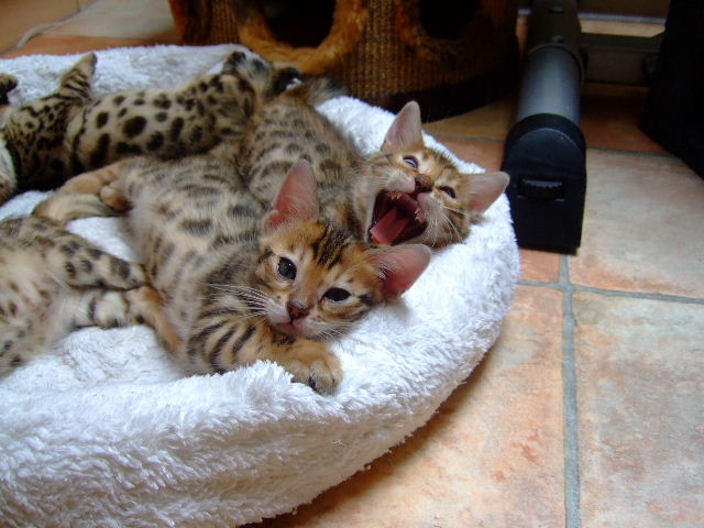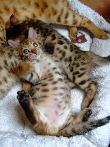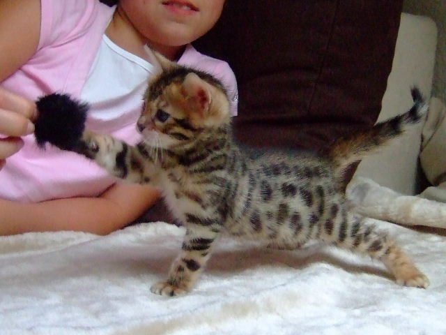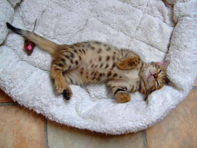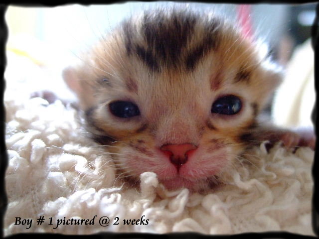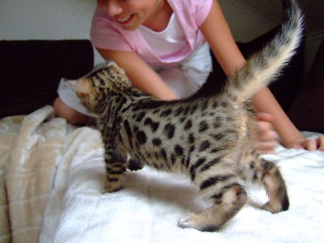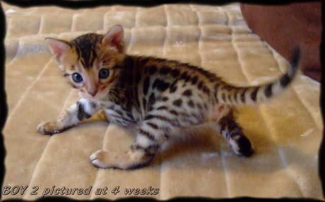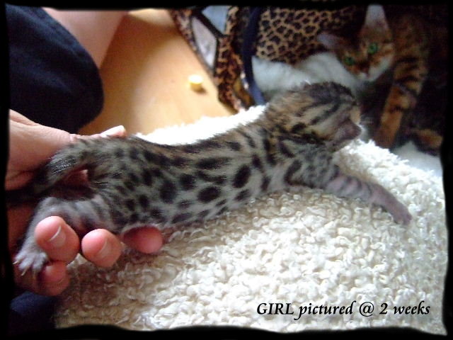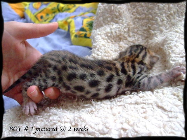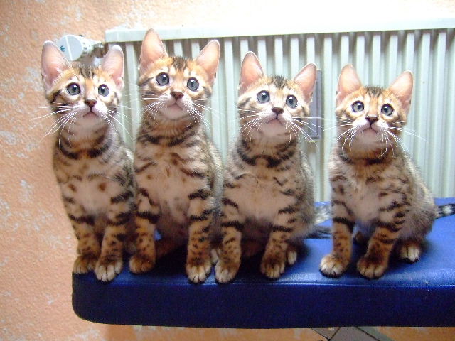 In der Nacht vom 03.05 auf den 04.05 hat unsere Special ihren 1. Wurf geboren. Es sind 3 Katerchen und 1 Mädchen, alle black-spotted-tabby ( sie werden alle eine wunderbare Rosettenzeichnung bekommen). Wir sind sehr glücklich, dass unsere Special & Xtreme uns einen solch traumhaften Wurf geschenkt haben und das alle Kitten gesund und munter sind :o)