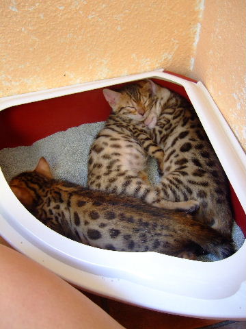Unsere armen Kitten, bei uns gibt es keine Liegeplätze, Kuschelhöhlen, Kratzbäume usw. - ein paar lustige Schnappschüsse von einer Katzenklo-Siesta :o)